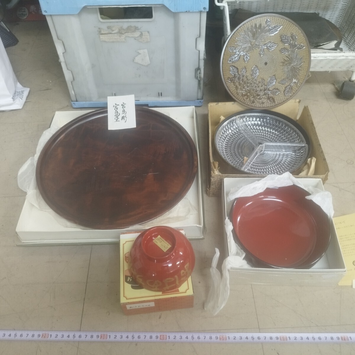 > 戸06c 漆器まとめ 輪島塗 宮島彫 宮島塗 稲忠漆芸堂/丸盆/吸物椀/皿/会津塗 未使用品含む 伝統工芸 漆芸 和食器 茶器