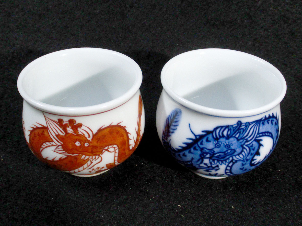 - ★源右衛門窯 紺朱十二支 辰 ペア ぐい呑 有田焼 木箱入り 酒器 未使用★S13454