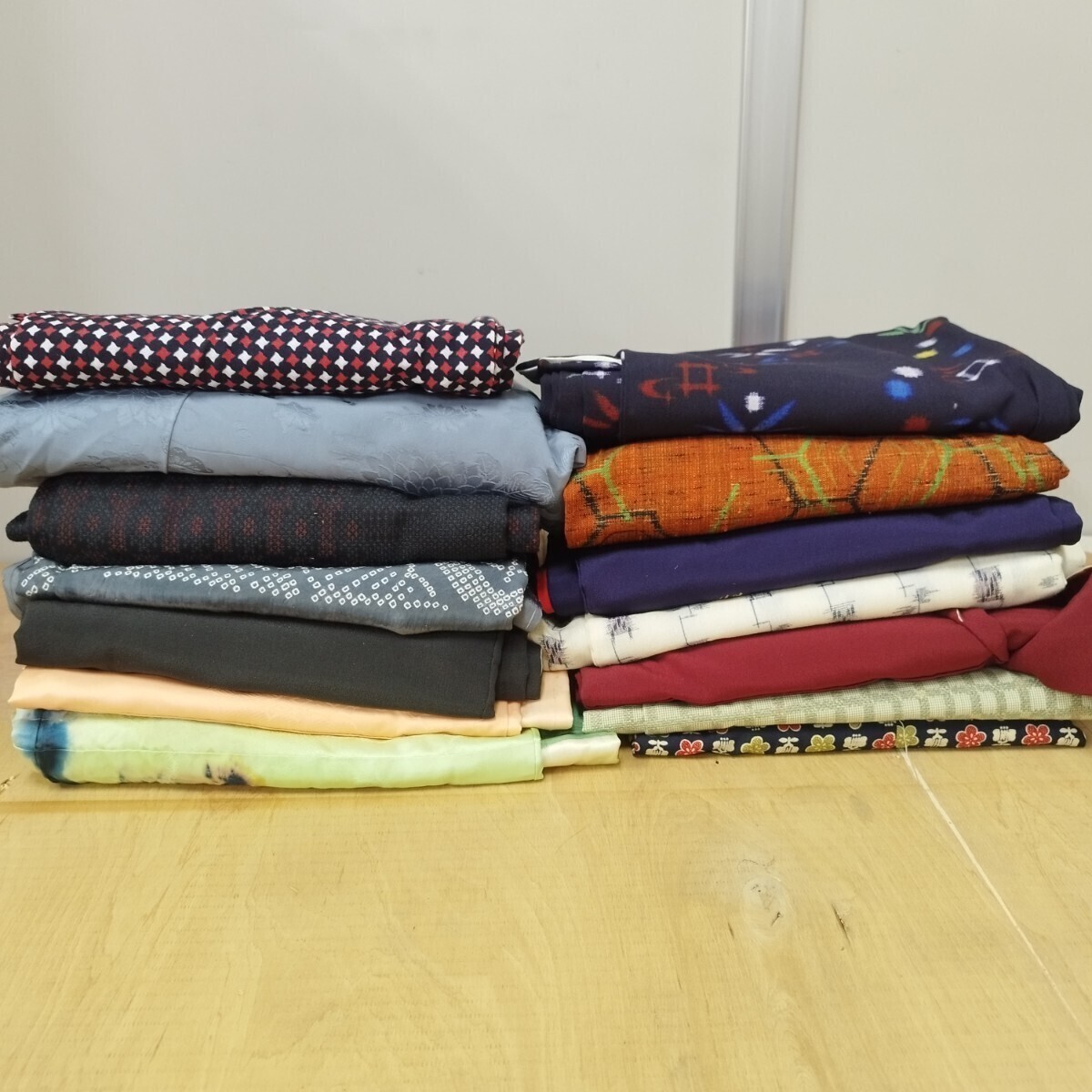- 戸06c 浴衣 着物など 14枚 まとめ 売り 着物 和装 和柄 和服 レトロ柄 花柄 かわいい サイズ色々 黒色 カラフル リメイク 材料 素材 生地