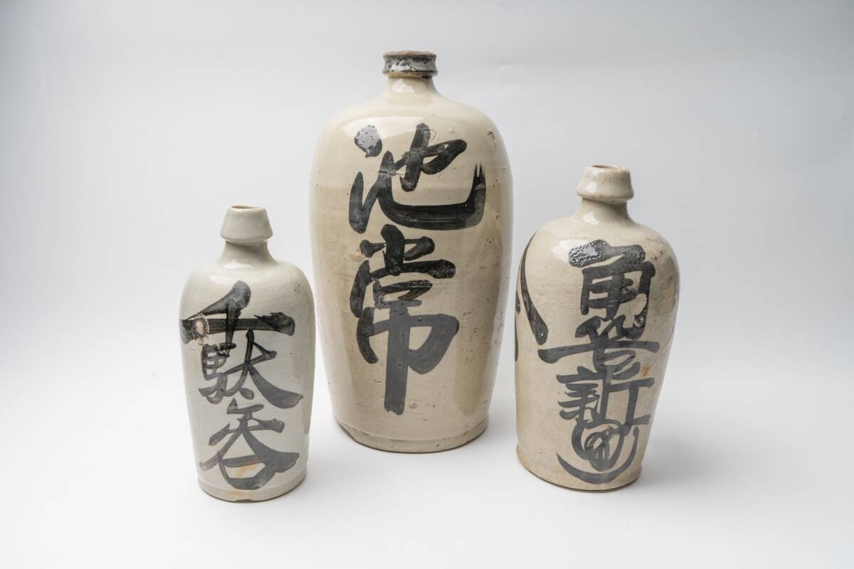 - 時代物 通い徳利 3点セット 徳利 酒器 陶器 古酒 古物 とっくり 酒壺 貧乏徳利 古陶磁 酒瓶 アンティーク W-83
