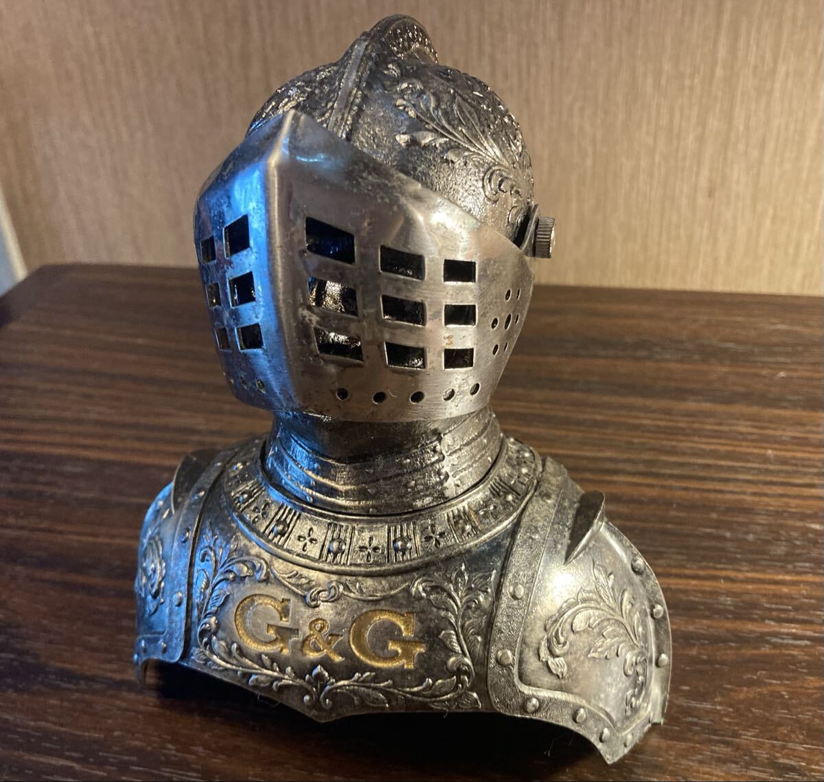 - ニッカ ウイスキー G&G 西洋 甲冑 鎧 兜 アンティーク 騎士 メタル オブジェ NIKKA WHISKY ボトルカバー 昭和 レトロ ヴィンテージ 酒 置物