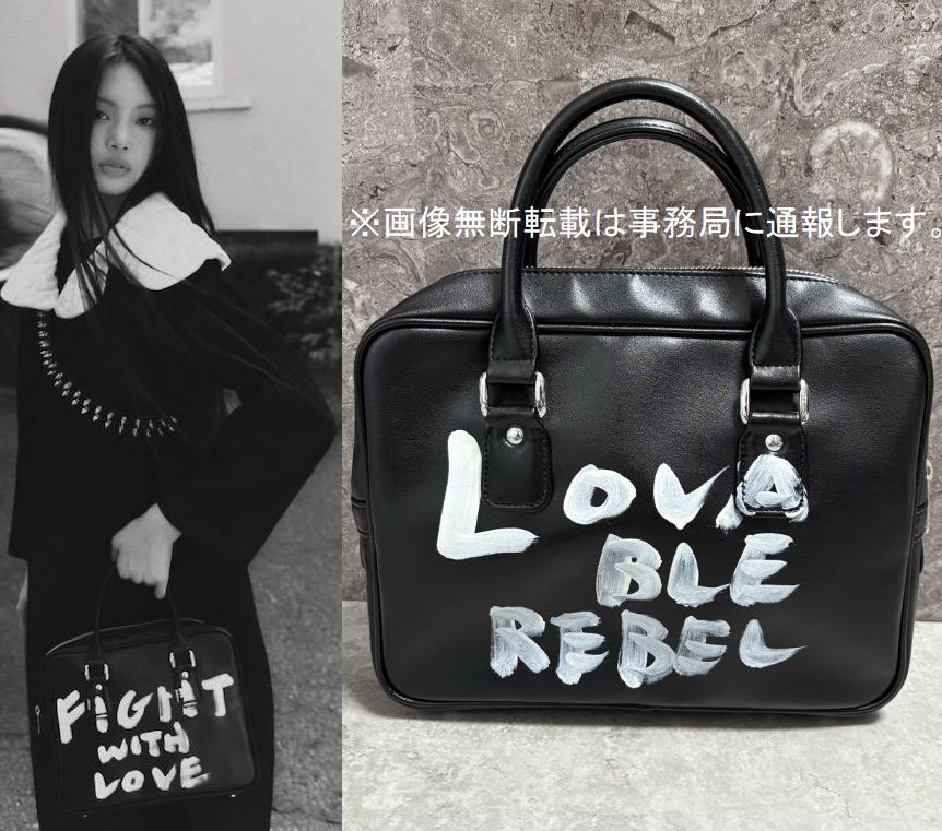 > COMME des GARCONS GIRL コムデギャルソン ガール☆フェイク レザー ペイント メッセージ トート バッグ/ブラック 黒