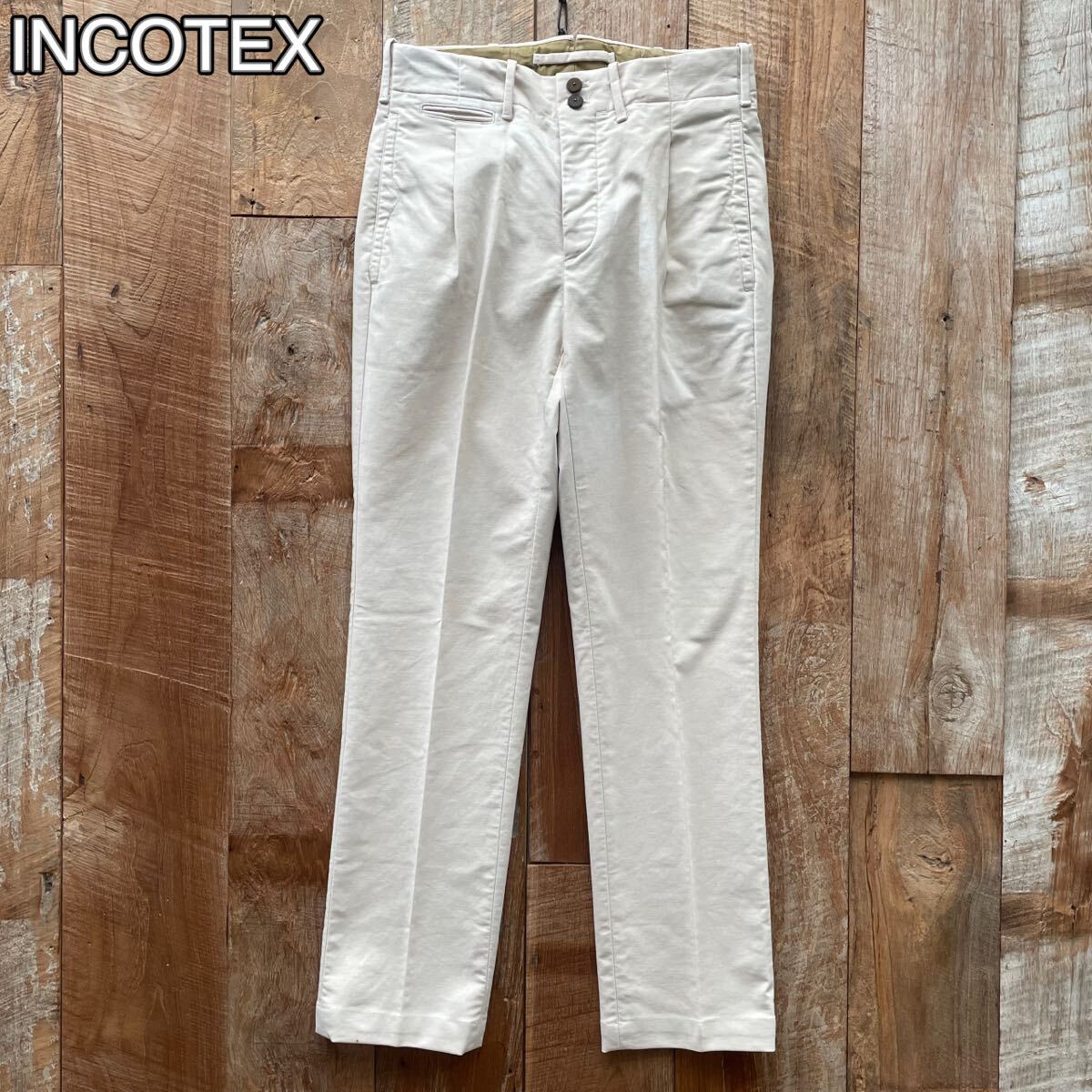 > 【極美品】INCOTEX インコテックス TAPERED fit 1プリーツ 1タック テーパード コットン スラックス パンツ 44 オフホワイト BEAMSF取扱