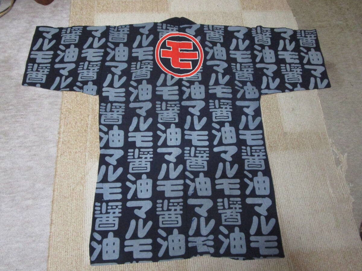 - 古裂 古布 古生地 木綿 全面文字染 マルモ油 作業着 半纏 破れ穴無 着丈約92肩幅約63袖丈約31身幅約63 追加画像有
