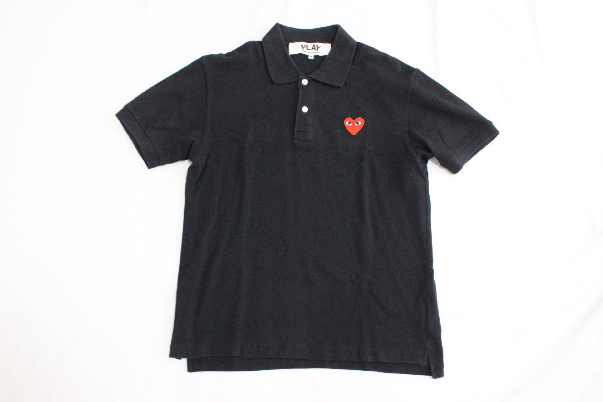 - プレイ コムデギャルソン PLAY COMME des GARCONS プレイハート ワッペン ポロシャツ 半袖 黒 ブラック 赤 レッド [M] メンズ G9
