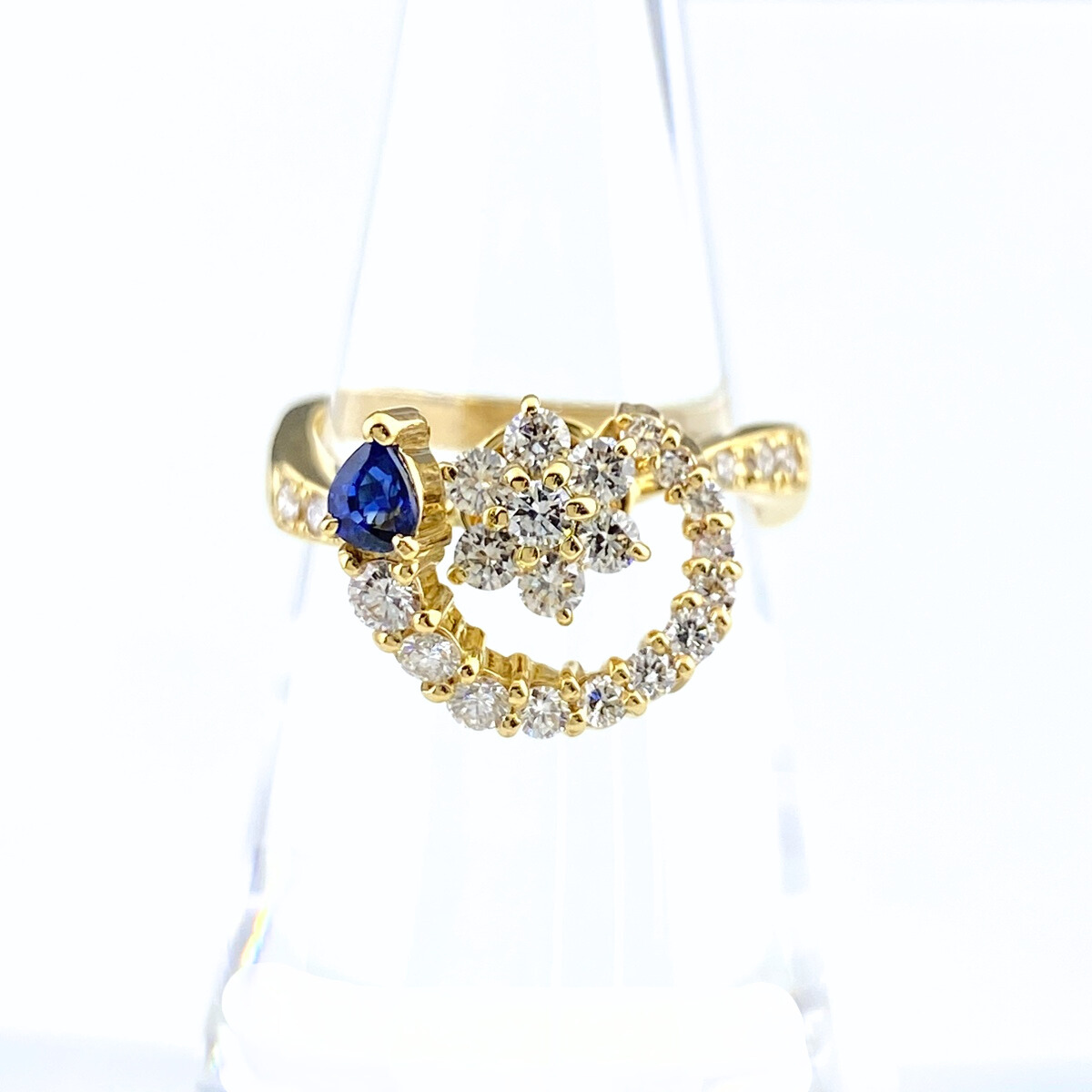 > ウォルサム WALTHAM フラワーモチーフ デザインリング YG イエローゴールド 指輪 サファイア 12号 750 ダイヤモンド レディース 中古