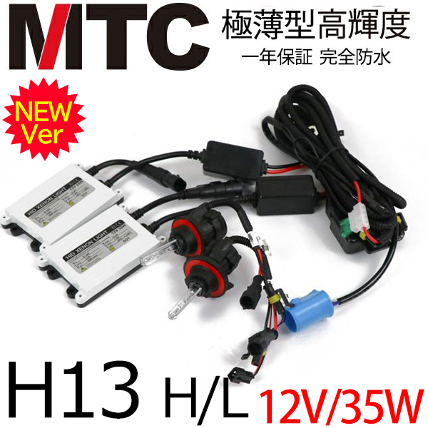 > 次世代【品質勝負】MTC製◆純正リレーハーネス付き 極薄型 35W H13hi/lo HIDキット ヘッドライト 12000K 1年保証