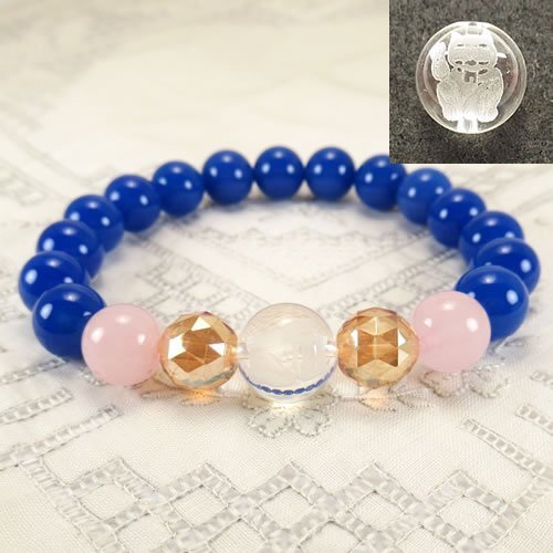 - 【SJ】新品 開運!招き猫 パワーストーン ブレスレット ジュエリー ブルーカルセドニー仕立て ALA717