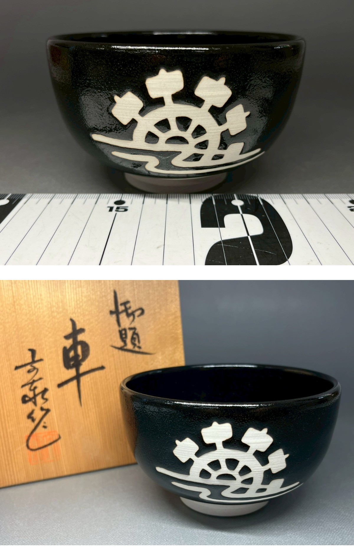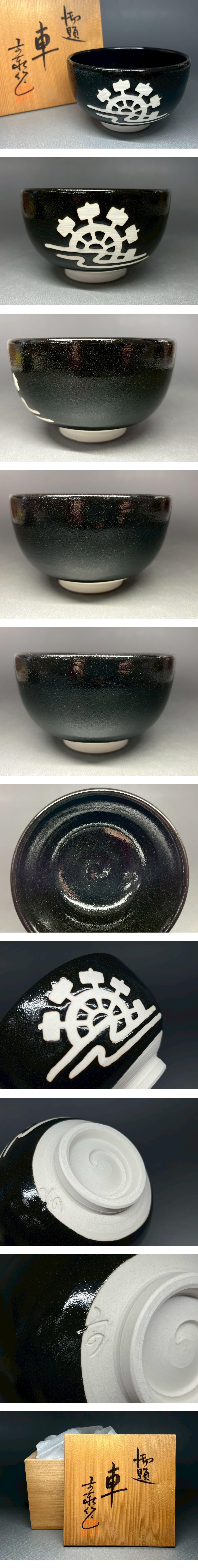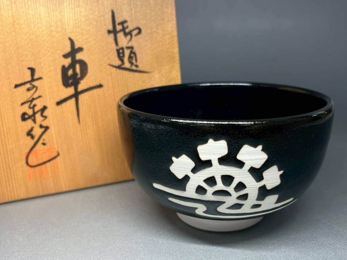 - 杉浦文泰 兎月窯 御題茶碗「車」共箱 栞 骨董 置物 飾物 日本伝統工芸品 芸術 古美術 茶道具 食器 茶器 初出 時代物 長崎買取