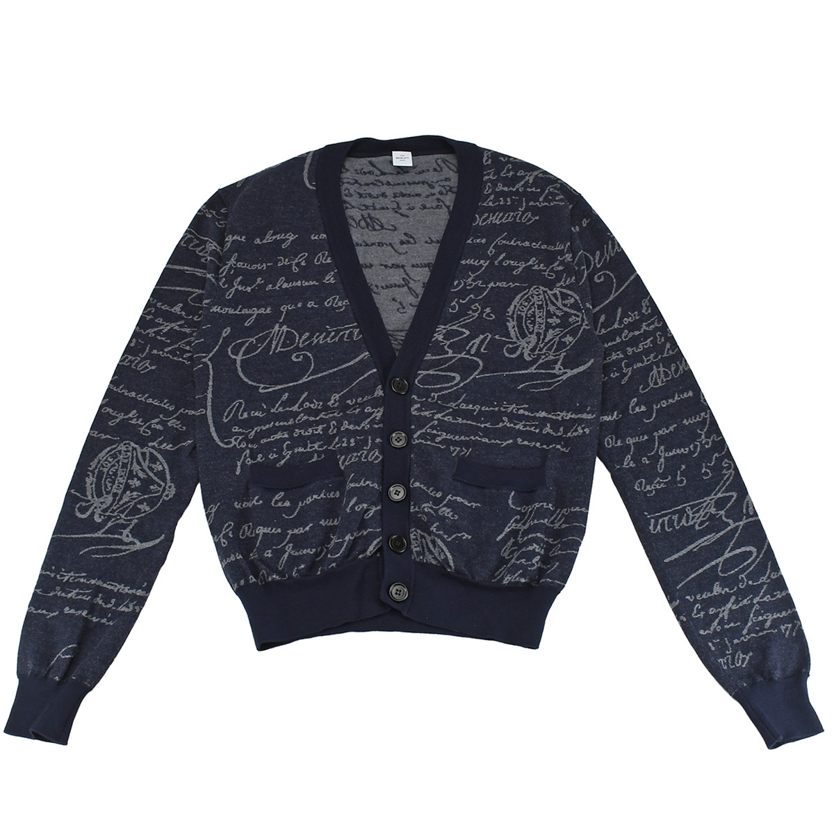 > ベルルッティ BERLUTI スクリット ウール カーディガン カリグラフィ ニット トップス 長袖 メンズ ネイビー ブルー サイズXS 新品同様