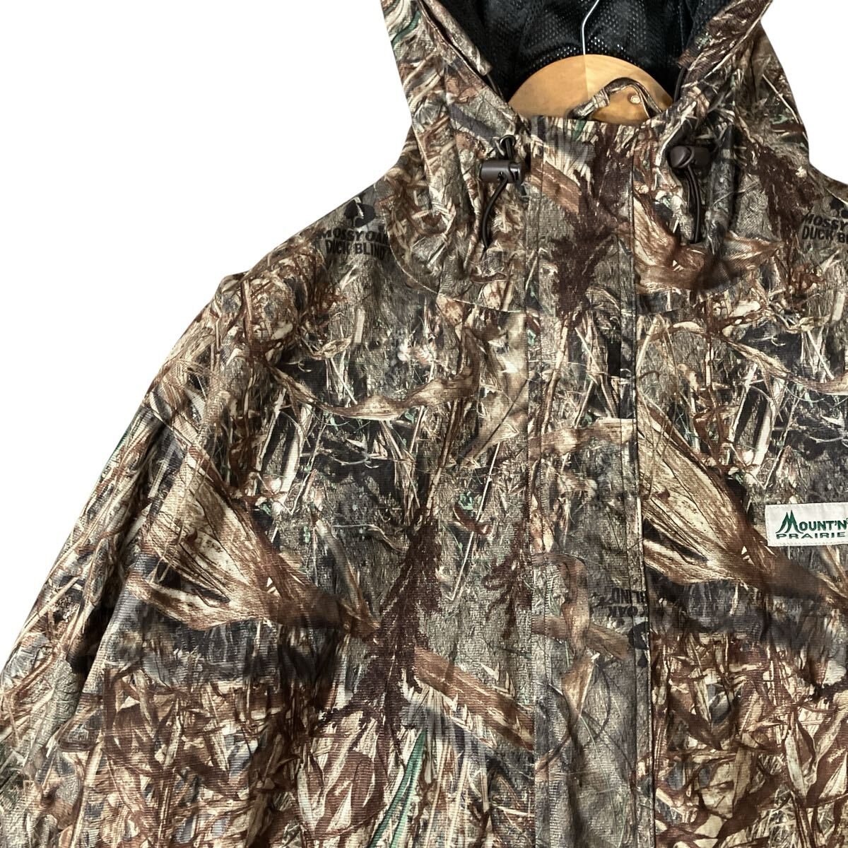 > リアルツリー ジャケット マウンテンジャケット ハンティングジャケット薄手生地 裏地メッシュ フード付き カモフラ迷彩2XL古着ツリーカモ
