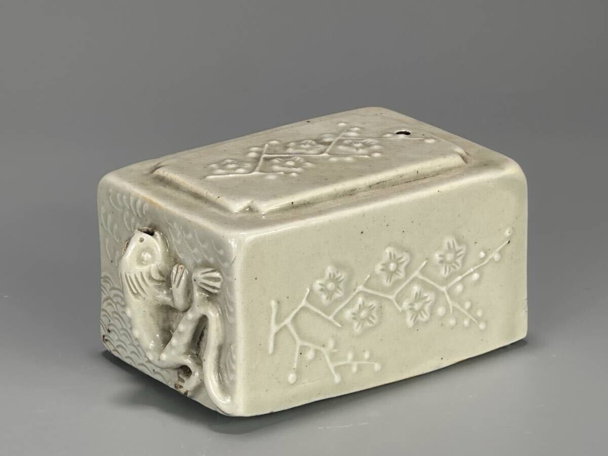 - US29-13 朝鮮古美術 李朝時代 李朝 白磁 盤龍梅文方型水滴 書道具 文房具 古物保証 唐物 時代 韓国美術