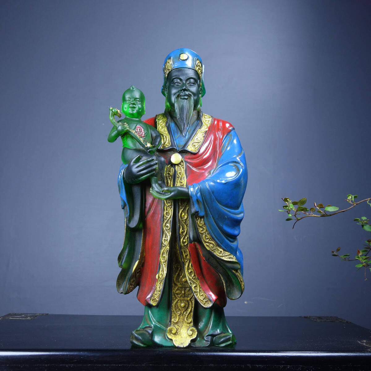 - 『館蔵珍品 琉璃製 細密彫 彩繪 福星高照 仏像 宗教 仏教古美術 供養品』稀少珍蔵品 古賞物 貴重物品 収蔵品 中国古美術 時代物 古董品