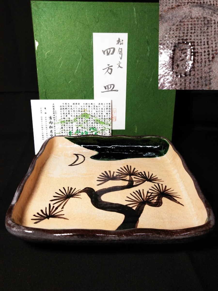 > 織部 吉向 松月 四方皿 松月文 盛器 盛皿 在銘 絵付 (検索) 工芸 美術 懐石 会席 茶道具 古玩 古道具 陶器 陶芸 菓子器 茶会 和食器