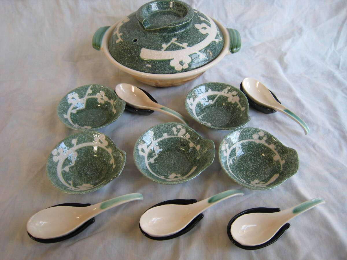 - ◎使用度少ない 三陶陶器◎土鍋セット「織部梅画」