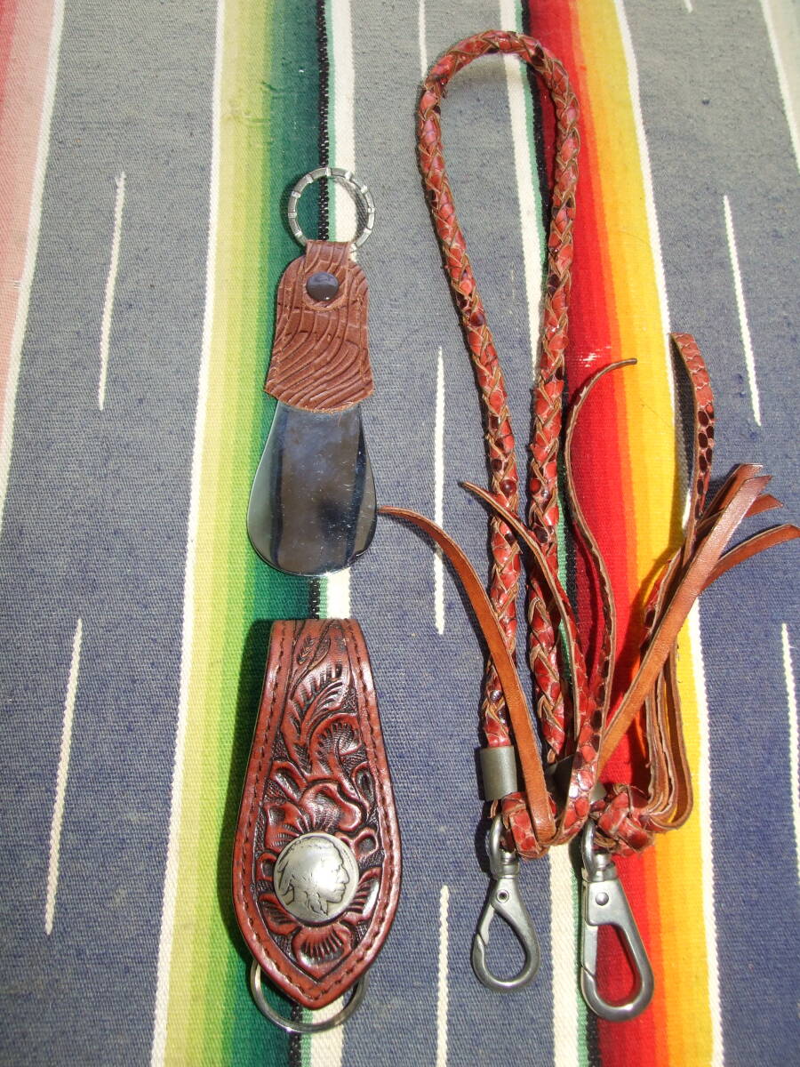 - ALZUNI/アルズニ*ウォレットチェーン*レザーコード*カービング革&インディアンコンチョ*シューホーン付き