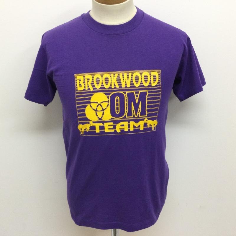 - ヘインズ 90’s USA製 HEAVYWEIGHT 50/50 半袖Tシャツ BROOKWOOD ロゴプリント ヴィンテージ TEE S