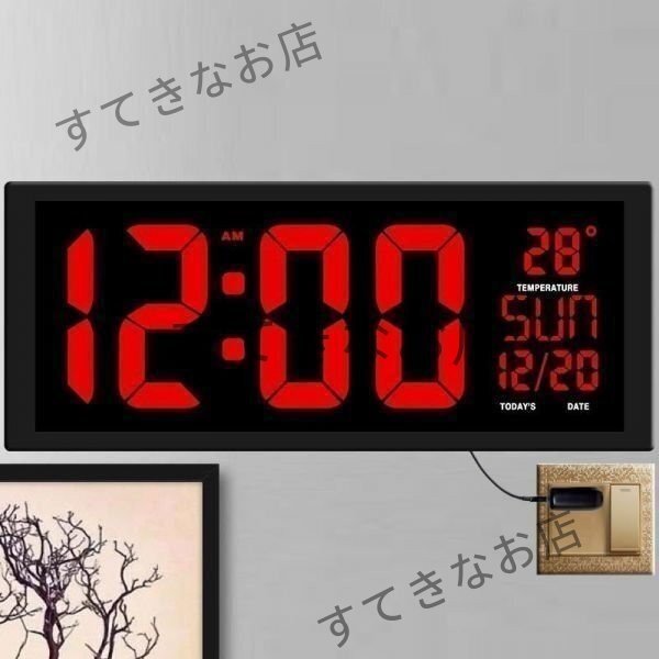 - 掛け時計 壁掛け時計 置時計 デジタル LED USB インテリア モダンデザイン ビッグ桁 レッド★1点