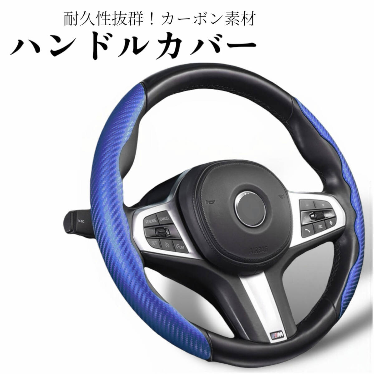 > ハンドル カバー ブルー 青 ステアリング カーボン調 汎用 車用 滑り止め ノンスリップ O型 D型 汚れ防止 取付簡単 カーボンファイバー