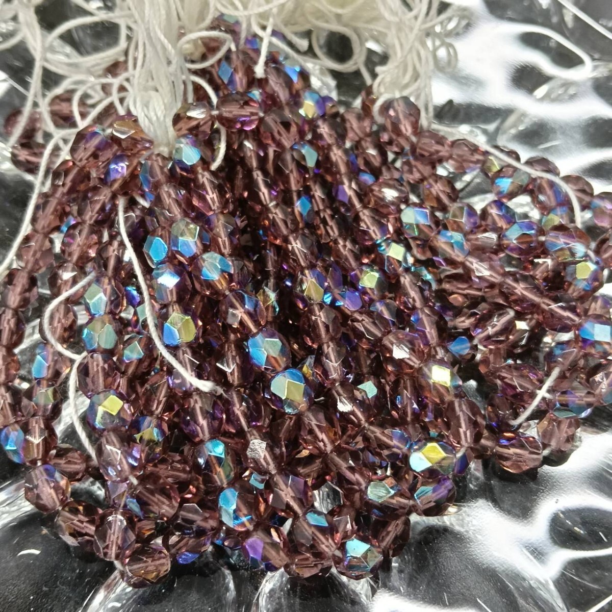 > L479 ☆未使用 大量 チェコ ファイアポリッシュ ガラスビーズ 82g 6×5mm チェコカット ラウンド 紫 パープル 大粒 ヴィンテージ B-508