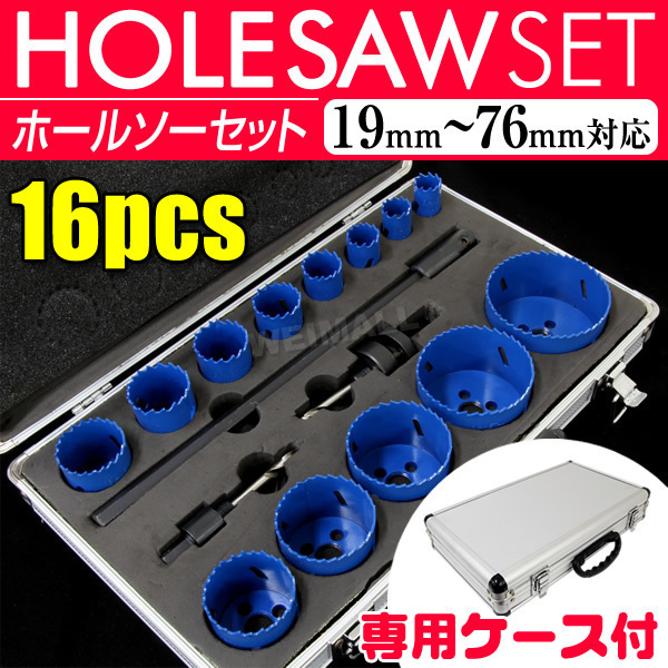 > ホールソー セット 16本セット ホールソーキット マルチホルソー ハイス鋼 穴開け 木工 金工 旋盤 ドリル プラ板 配管 専用収納ケース付き