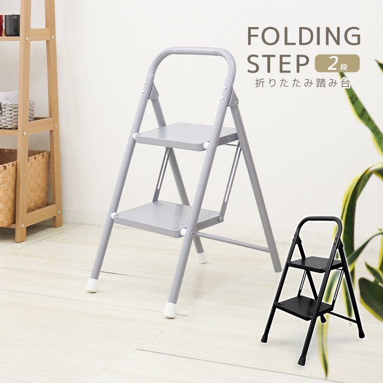 - 脚立 踏み台 2段 折りたたみ ステップ台 耐荷重150kg おしゃれ 滑り止め コンパクト ステップチェア ステップスツール はしご ブラック