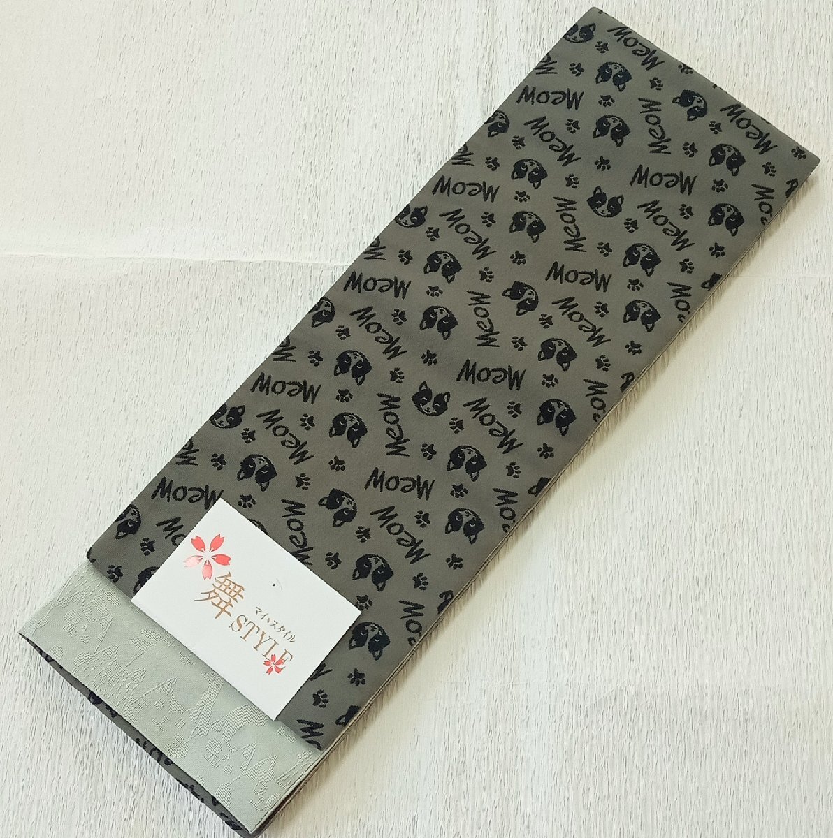 > 7868 両面半幅帯(細帯)【グレー・猫いっぱい】-