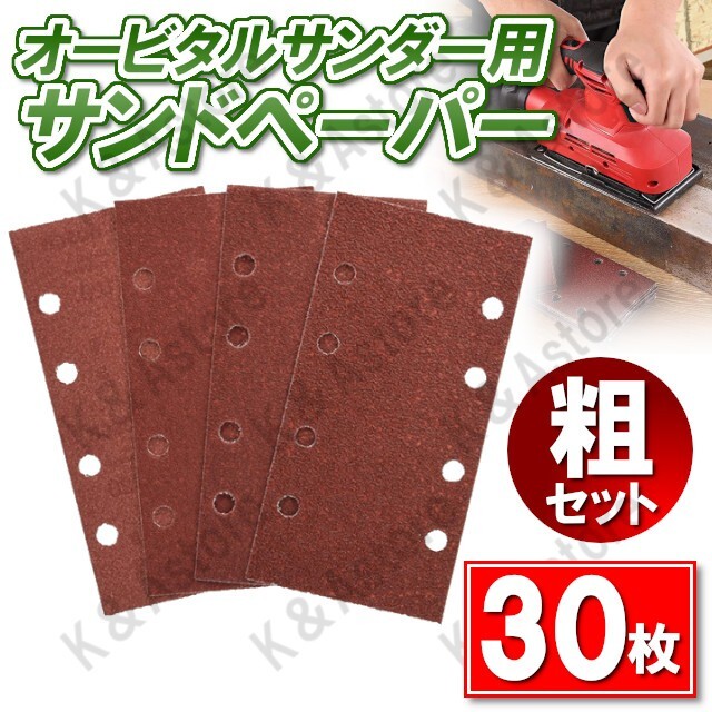 - サンドペーパー オービタルサンダー 仕上げサンダ ハンドサンダー マジック 面ファスナー 紙やすり ヤスリ 工具 研磨 185×93mm 粗目セット