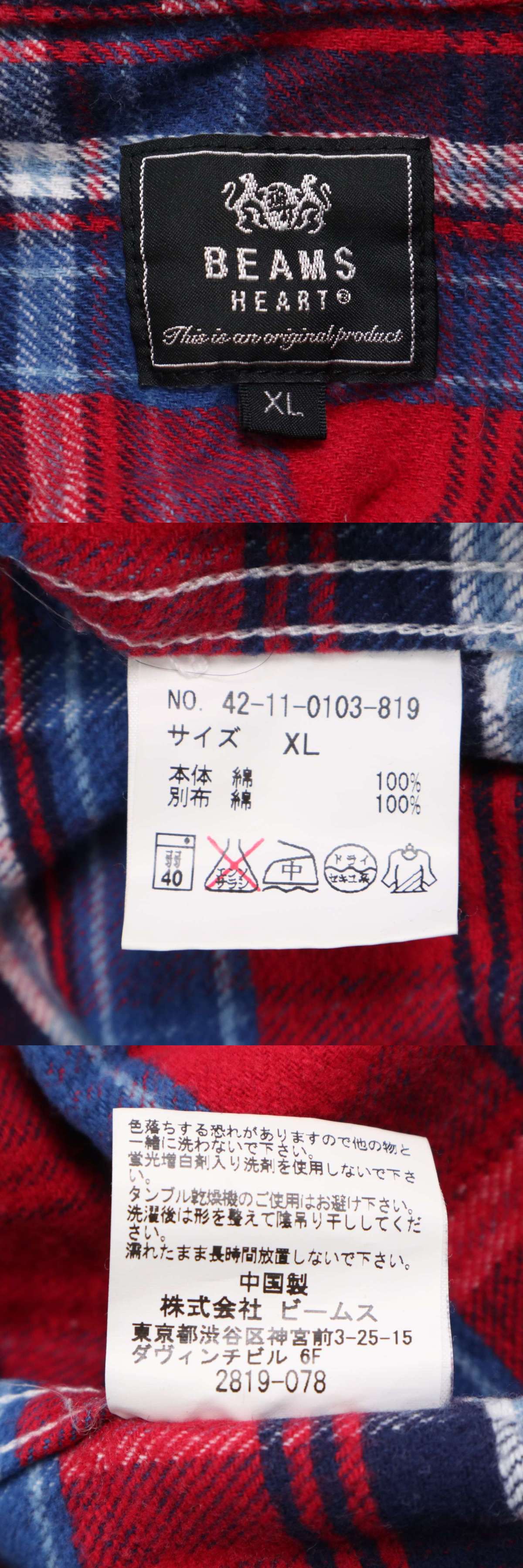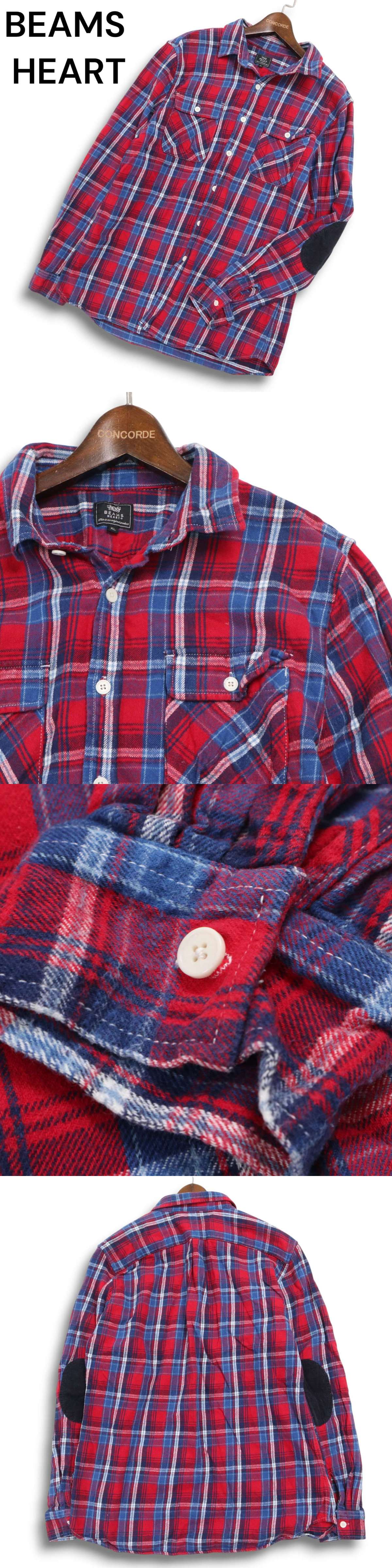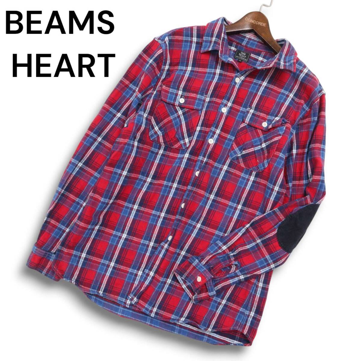 - BEAMS HEART ビームス ハート 秋冬 エルボーパッチ★ 長袖 ワーク チェック ネル シャツ Sz.XL メンズ 大きいサイズ