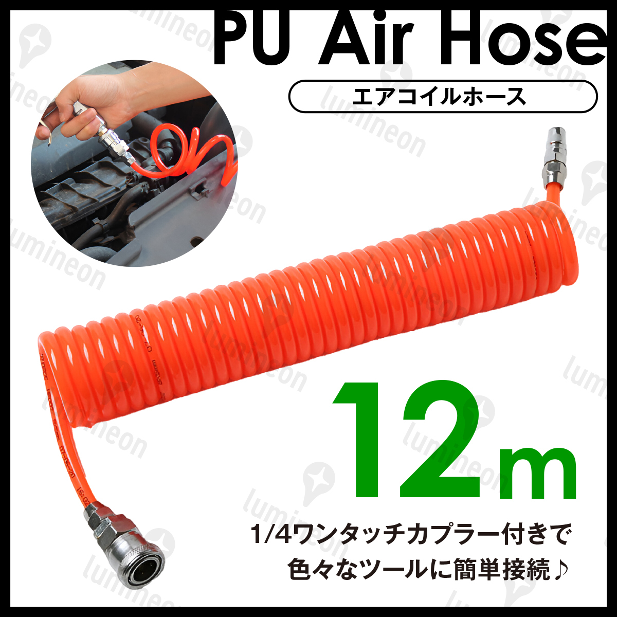 - エア コイル ホース エアー ダスター チューブ 12m ツール 延長 カプラ カプラー コンプレッサー 工具 DIY 塗装 空気入れ コネクタ g230d 3