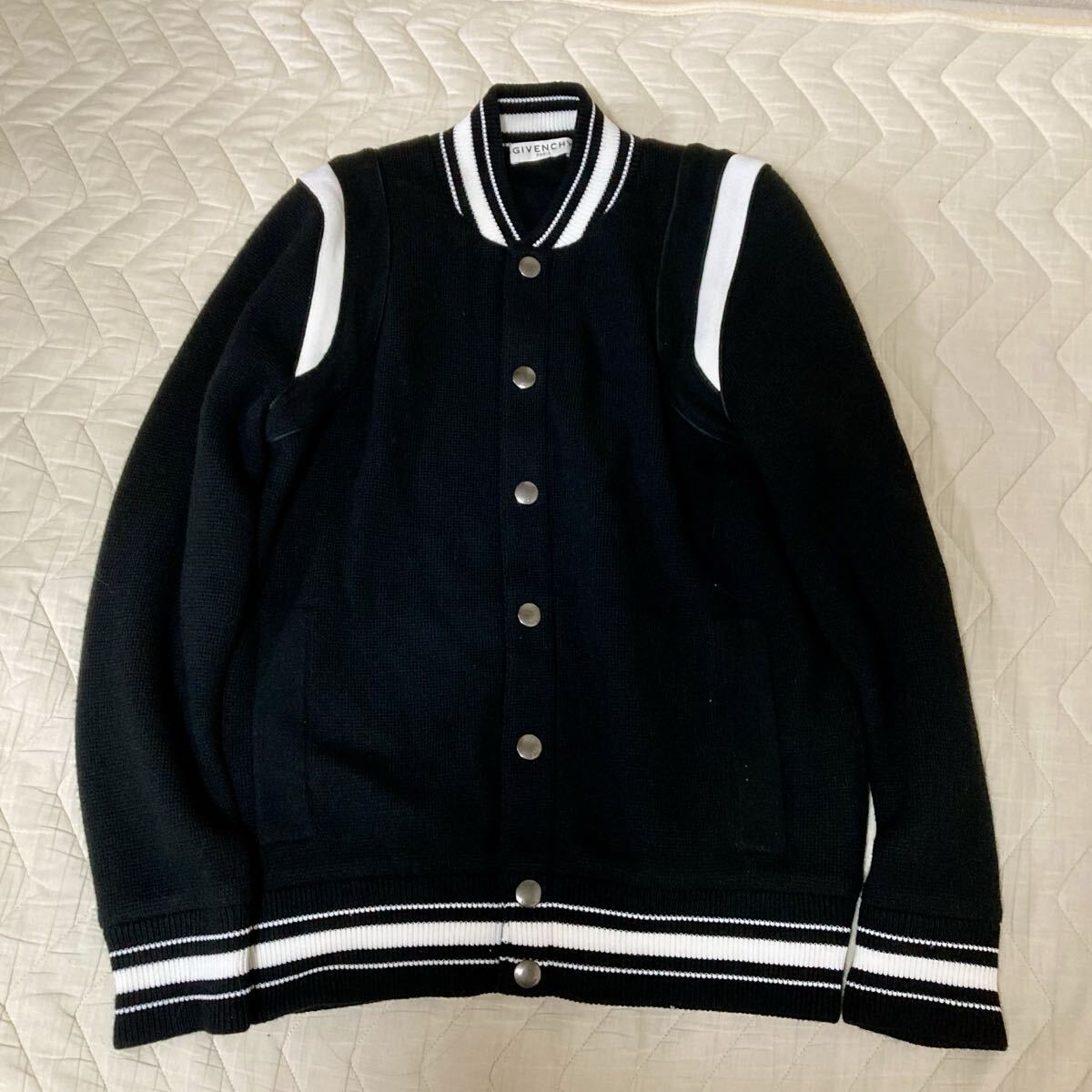 > シバンシィ ボンバージャケット Mサイズ ウール ブラック 黒 ブルゾン スタジャン GIVENCHY メンズ ロゴ ジャンパー ツートーン