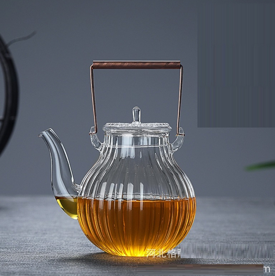 - 人気品 手作り 耐熱ガラス ティーポット 銅製 持ち手 ガラス製ポット 花茶 工芸茶 紅茶ポット ガラスティーポット ハーフティー に 直火可