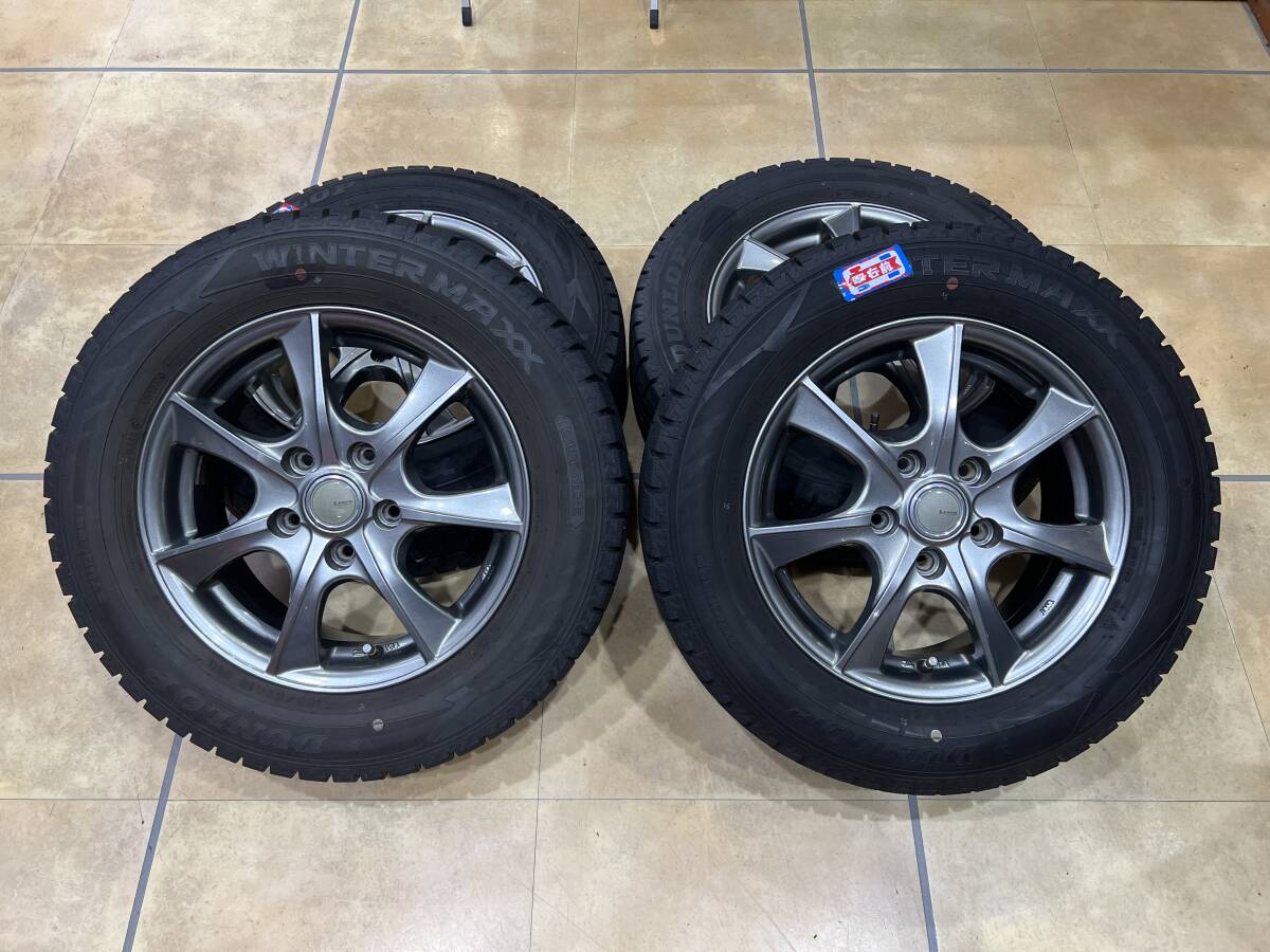 - ■美品 DUNLOP LEBEN アルミホイール スタッドレスタイヤ 4本セット 195/65R15 2023年 5穴 PCD 114.3 6J +52 ウィンターマックス ■