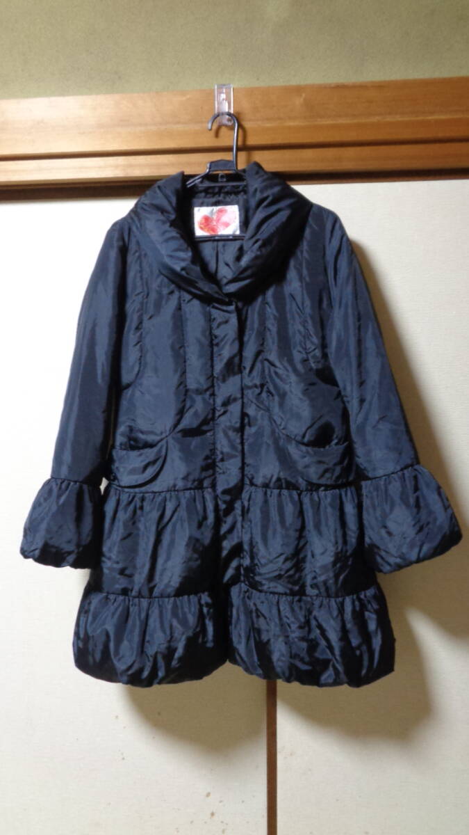 > 送料込み・未使用 I Love 裾フリル 黒 ダウンコート M
