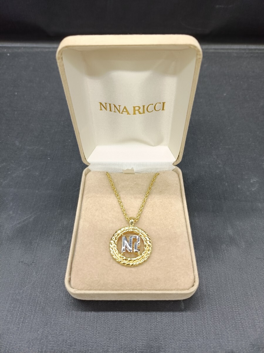 - 南★ NINA RICCI ニナリッチ ロゴ ネックレス ペンダント アクセサリー レディース ゴールド系