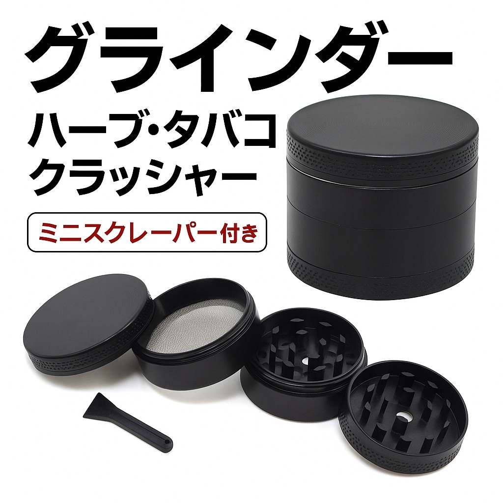 - 新品 タバコ用 グラインダー マルチミル ハーブクラッシャー 小型 黒色 ブラック 携帯 手動式 喫煙具 手巻き