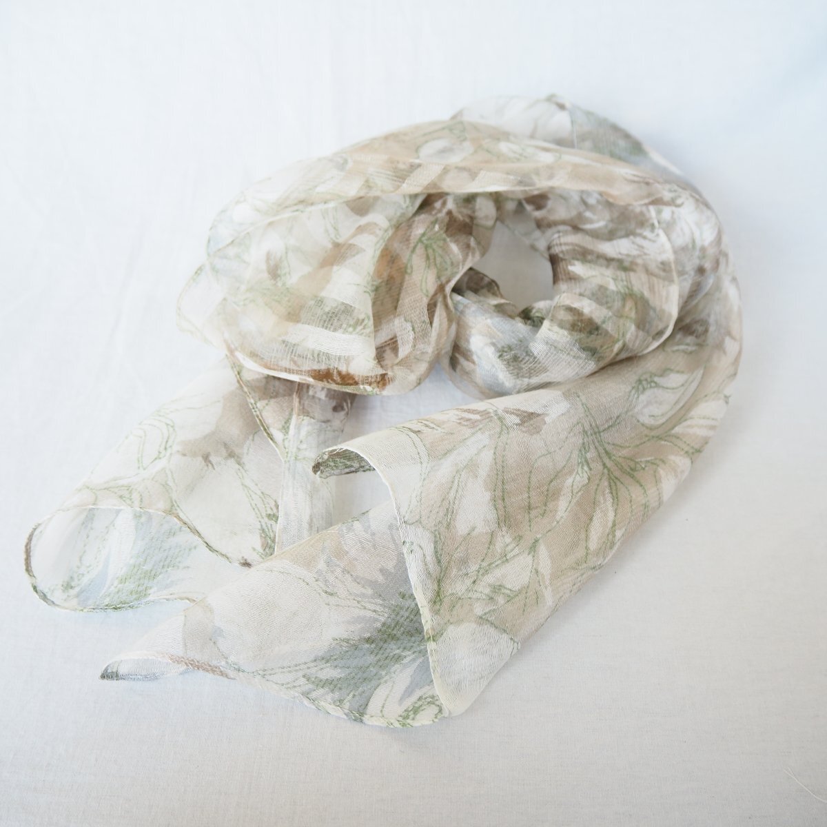 - スカーフ 軽い コンパクト ストール シルク 混 レーヨン ショール 約30×150cm 春夏 夏用 薄手 ふんわりやわらかな肌触り カーキ 花柄