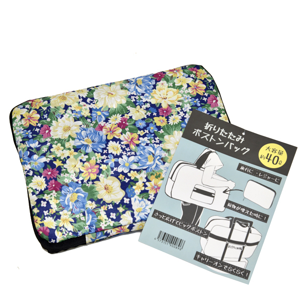 - 新品 折りたたみ キャリーオンバッグ 大容量 ボストンバッグ 40L コンパクト ナイロン 未使用 エコバッグ 機内持ち込み 花柄 ブルー 水色