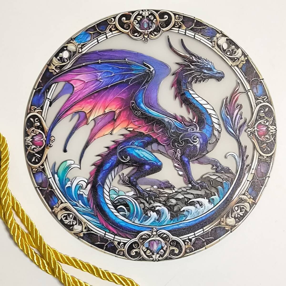 - 【ブルードラゴン・神龍・神話】アクリルプレート 飾り サンキャッチャー 紐付き オブジェ お洒落 壁や窓辺の飾りに◎