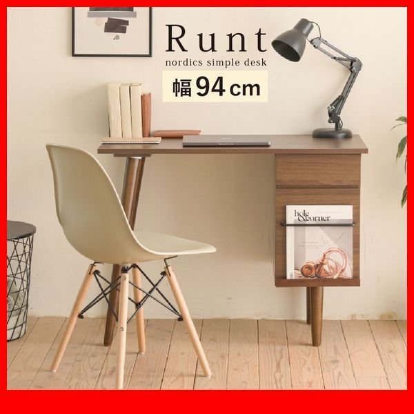 - 机★新品/北欧シンプルデスク/幅94cm パソコンデスク ワークデスク 引き出し収納 背面化粧/ブラウン/zz