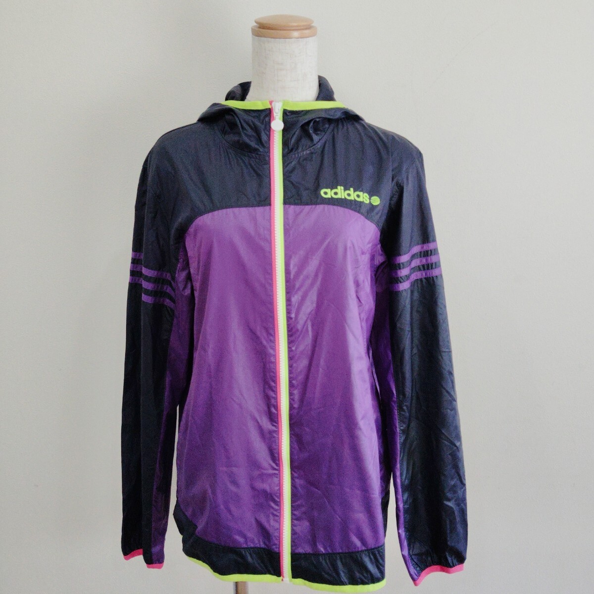 > 1003/M/adidas レディース ジップアップブルゾン ナイロンジャケット 薄手 ネイビー パープル