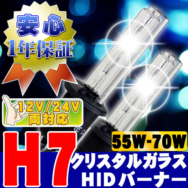 > HIDバーナー 55W-70W H7 30000K 12V/24V 交換用左右セット UVカット加工 石英ガラス ヘッドライト/フォグランプ