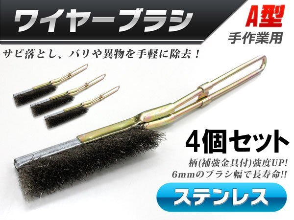 - ワイヤーブラシ 4本セット H&H メンテナンスブラシ A型ステンレス製 送料無料 高品質 最後の1点
