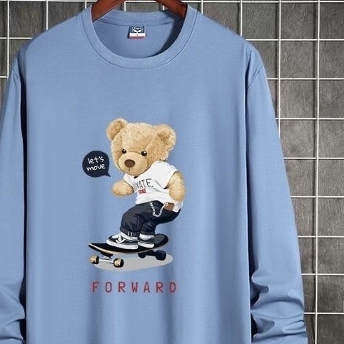 - ベアー トレーナー ロングTシャツ スケボー 長袖 日本未入荷 スモークブルー メンズ パーカー 新品 NASA レディース Tシャツ 秋冬春 お洒落