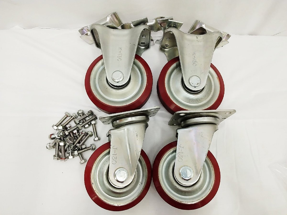 - キャスター 4個セット ネジ付き 固定キャスター 車輪 タイヤ 130mm 150mm 金属 台車 カート ワゴン / 名古屋発10-17△