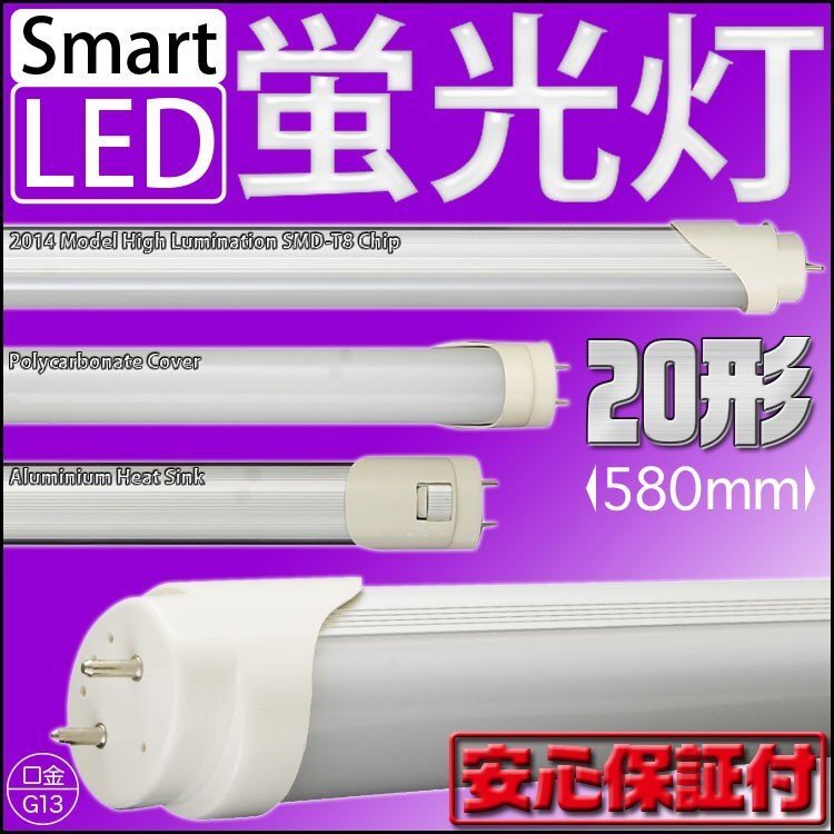 > LED蛍光灯 直管 20W 20W形 20型 20W型 20形 58cm 580mm 昼光色 SMD LEDライト 工事不要 節電 省エネ 天井照明 ビル オフィス