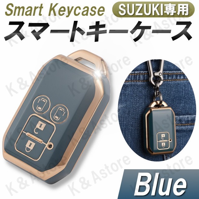 - 【匿名配送】スズキ スマートキーケース キーカバー ワゴンR スマイル スペーシア カスタム スペーシアギア ソリオ バンディット ブルー