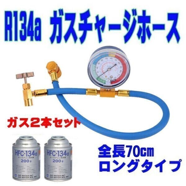 - ■エアコン ガス チャージ ホース ロング 70cm R134a 日本語説明書 ガス2本セット
