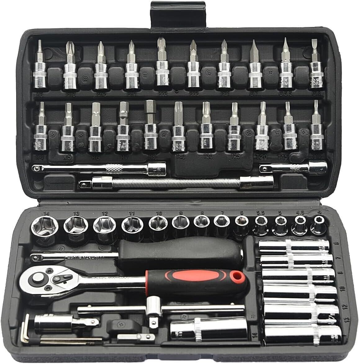 > ソケットレンチ 53点 ラチェットレンチ 1/4 サイズ レンチ DIY ドライバー ハンドル 黒(Y-161)1