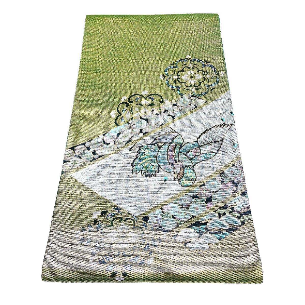 > 帯158 螺鈿 高級 正絹 太鼓六通 袋帯 花文 華文 鳳凰 vgajmwa